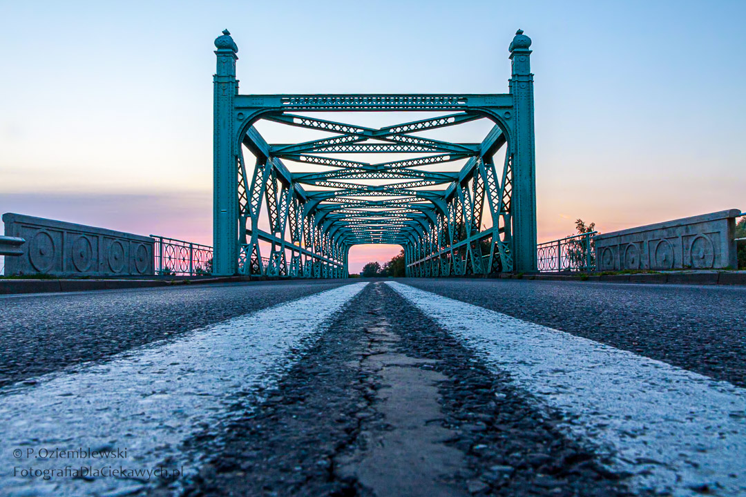 - Stalowe arkadowe konstrukcje mostu, oświetlone promieniami zachodzącego słońca, tworzą malowniczą bramę do innego świata.