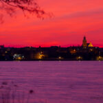 Obudziłem się wcześniej. Sen odszedł i nie było już sensu męczenie łóżka. Poszedłem więc nad jezioro, a tu takie kolory. Noc była mroźna, więc być może wisiało coś w atmosferze, co umożliwiło powstanie takich barw.