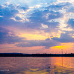 W dzień się rozpogodziło, a wieczorem słońce malowało już różne warstwy chmur. Pomarszczona woda wszystko to odbijała, tworząc dodatkowe refleksy świetlne.