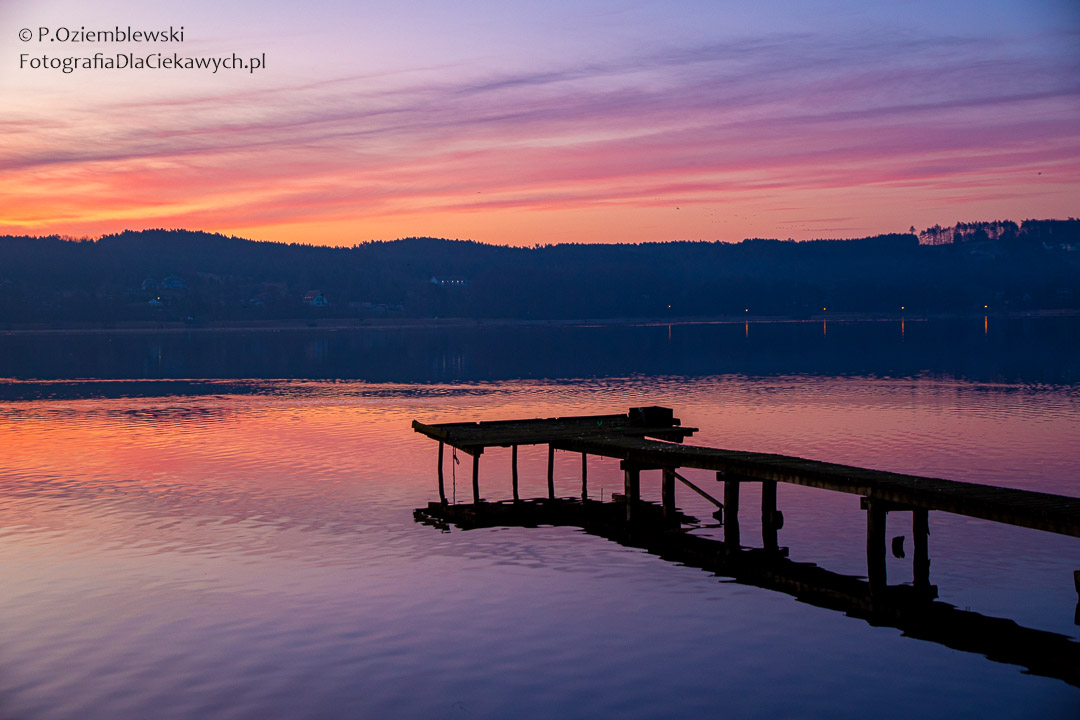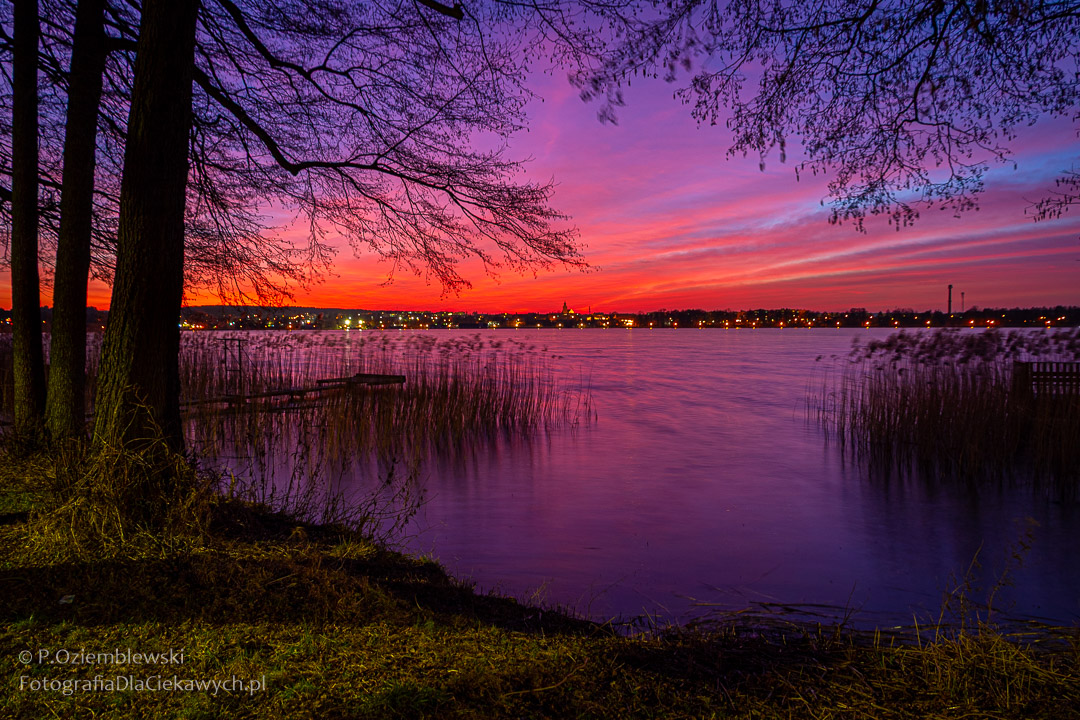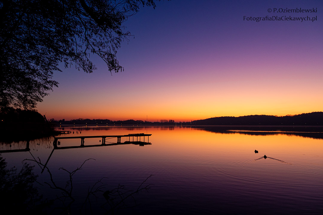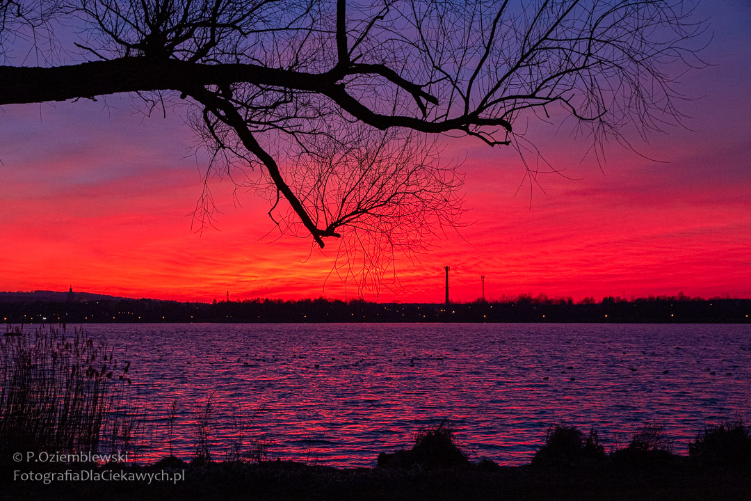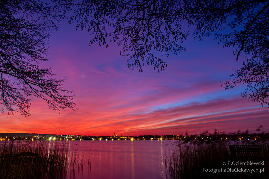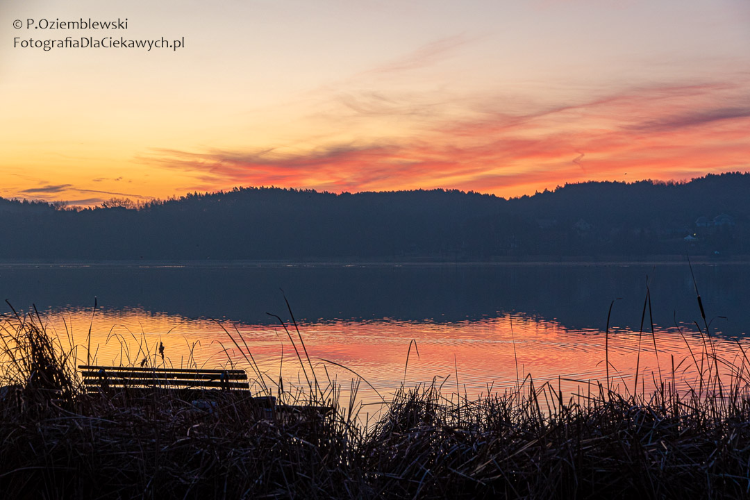 Obudziłem się wcześniej. Sen odszedł i nie było już sensu męczenie łóżka. Poszedłem więc nad jezioro, a tu takie kolory. Noc była mroźna, więc być może wisiało coś w atmosferze, co umożliwiło powstanie takich barw.