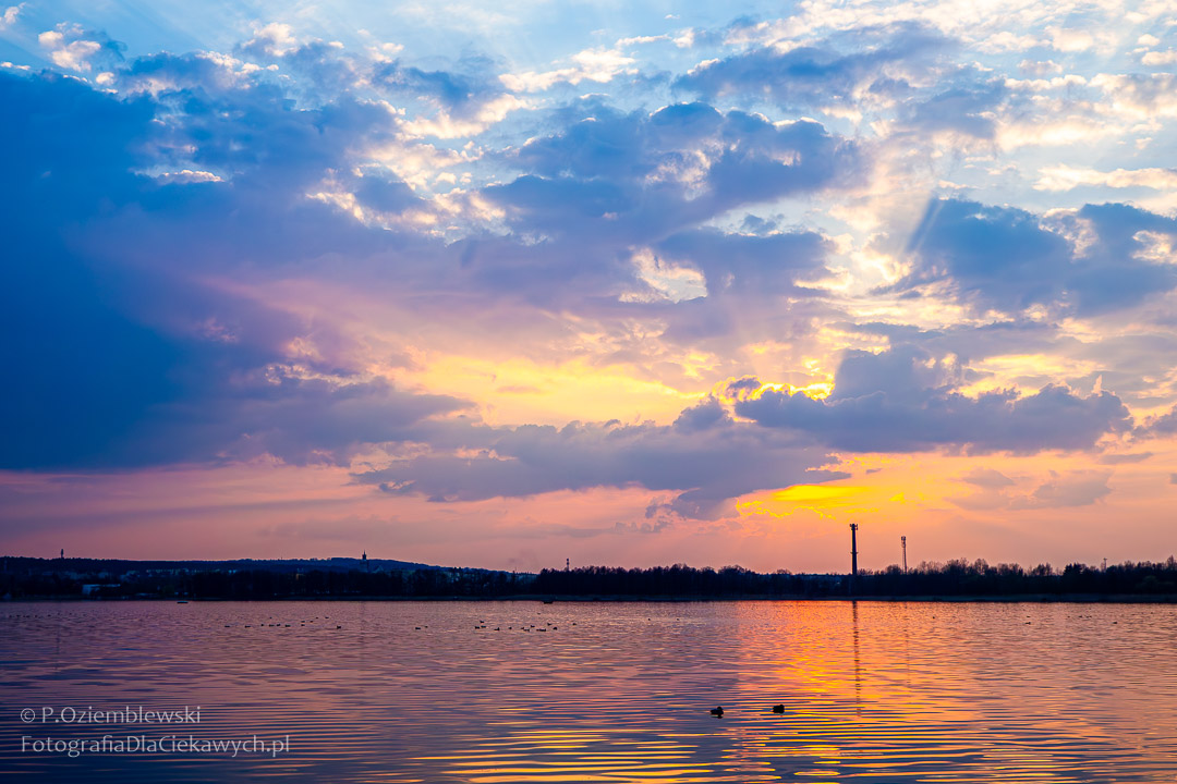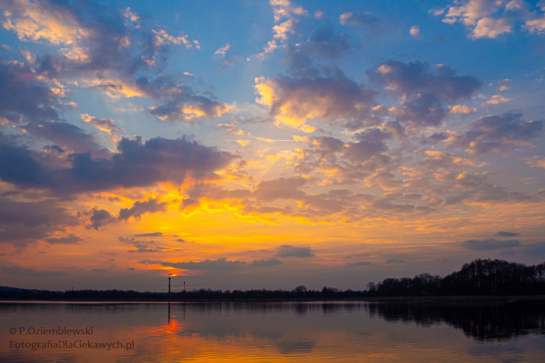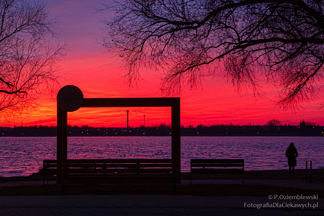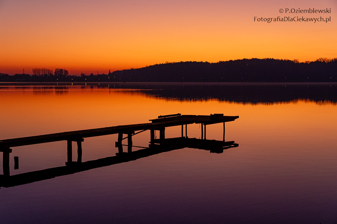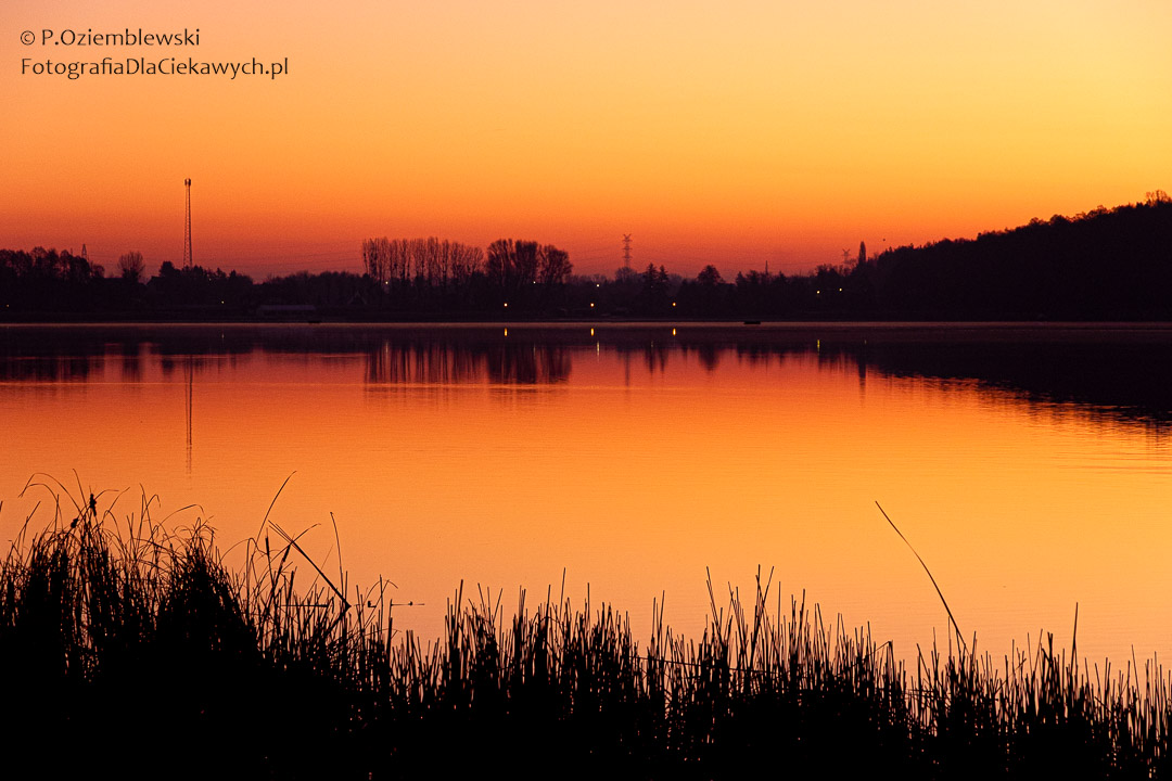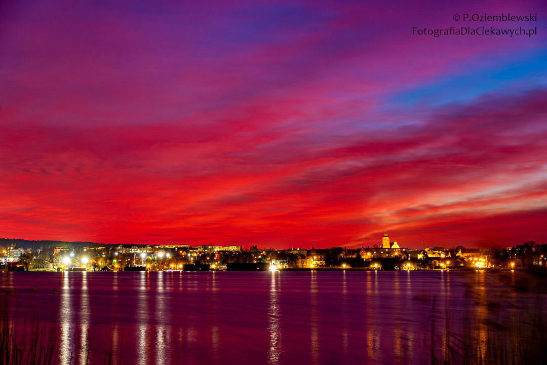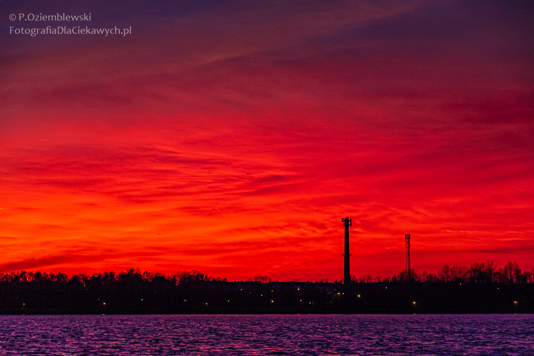 Obudziłem się wcześniej. Sen odszedł i nie było już sensu męczenie łóżka. Poszedłem więc nad jezioro, a tu takie kolory. Noc była mroźna, więc być może wisiało coś w atmosferze, co umożliwiło powstanie takich barw.