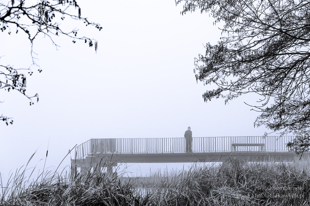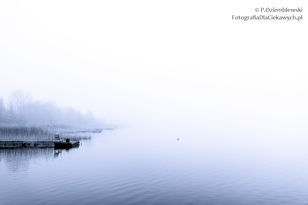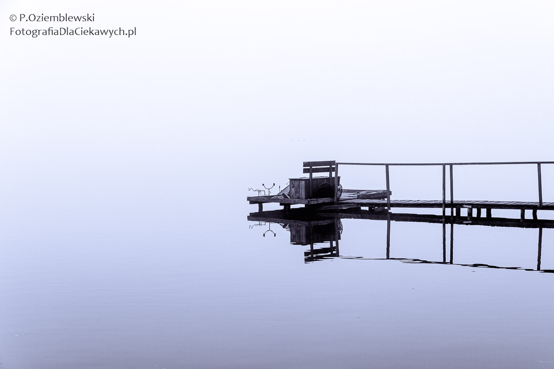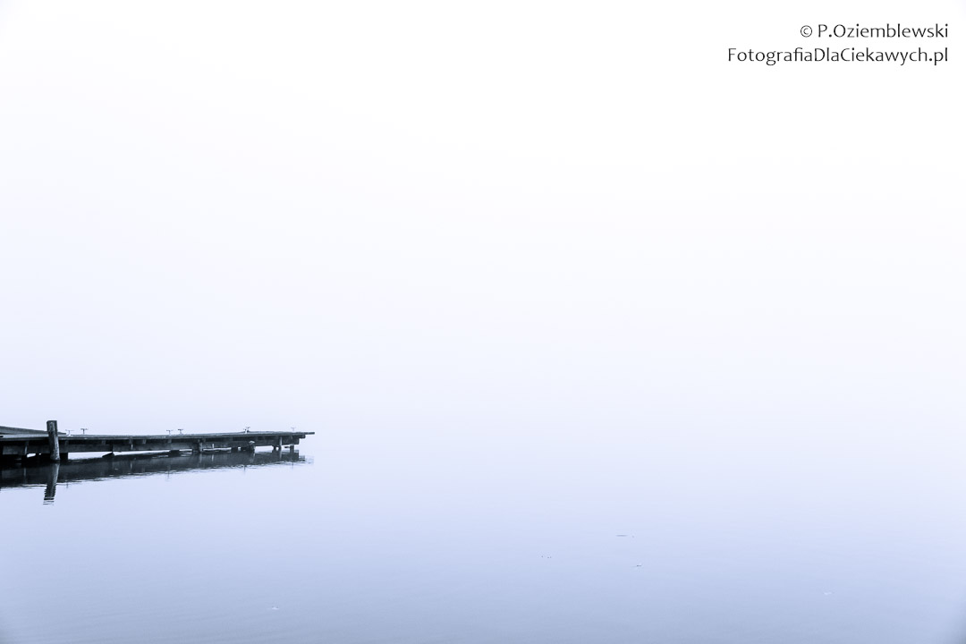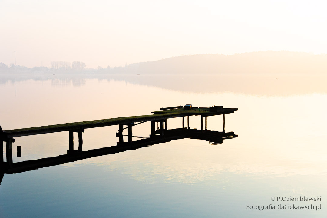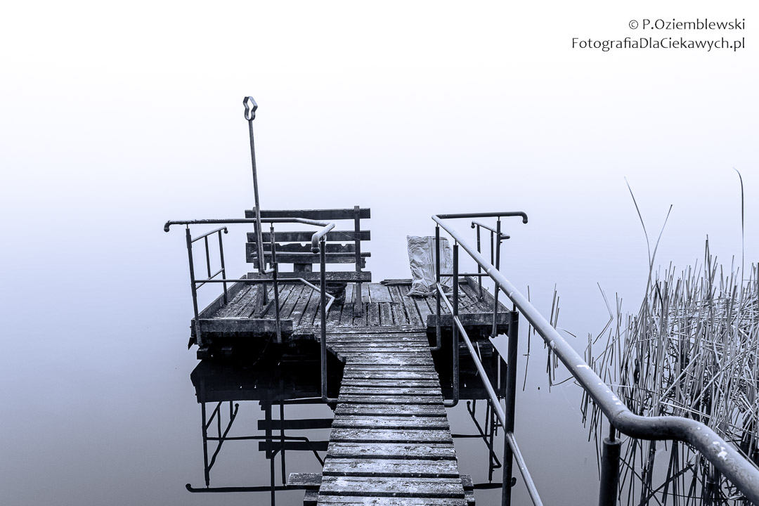 Szczególnie interesujące były poranki, gdy mgła zalegała nad jeziorem, całkowicie lub tylko częściowo maskując horyzont i tworząc tajemniczą scenografię. Pomosty wynurzające się z mgły stanowiły doskonałe elementy pierwszoplanowe dla zdjęć w stylu minimalistycznym. Światło słoneczne przeświecające przez mgłę pozwalało natomiast na uchwycenie subtelnych przejść tonalnych i delikatnych efektów świetlnych.
