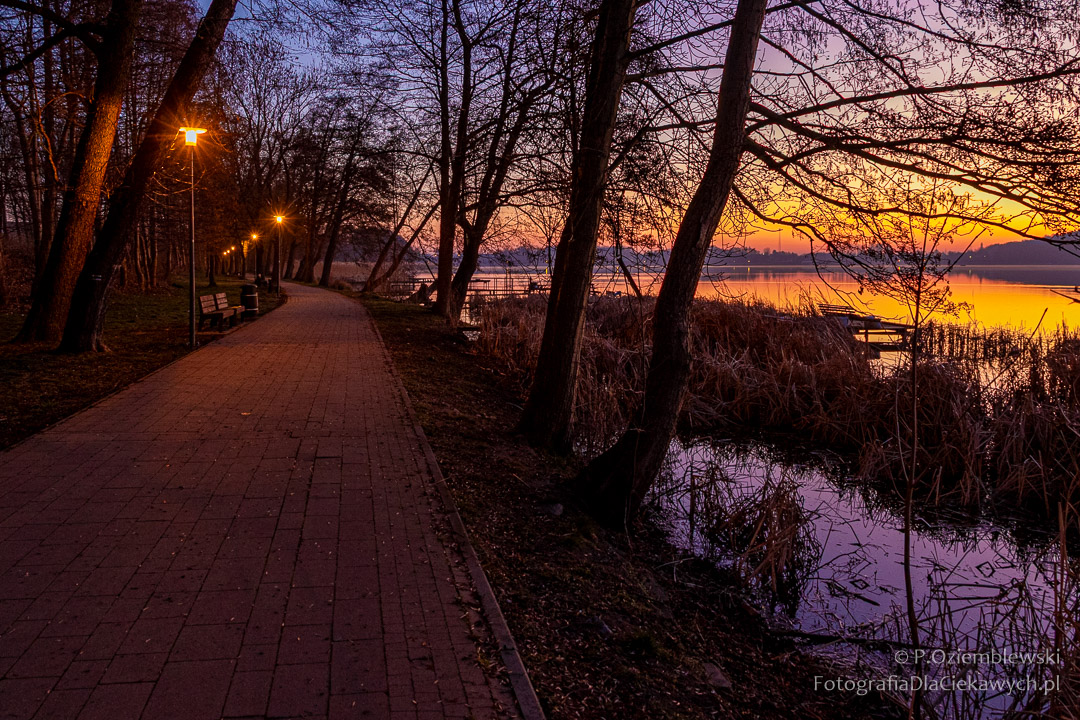 Dzięki za komentarz. Na pierwszym zdjęciu jest światło zastane. Jakieś dwa lata temu zrobili oświetlenie przy tej ścieżce, więc jest dodatkowe światło. Mnie to nie przeszkadza. Aczkolwiek bez tego światła wzrok bardziej by się koncentrował na widoku nieba, a nie drzew. Więc jak najbardziej słuszna uwaga. Co do wędkarza, to pomostów jest więcej. Poza tym są oni poza moją kontrolą. Raz są, a raz ich nie ma. Takie życie. 🙂