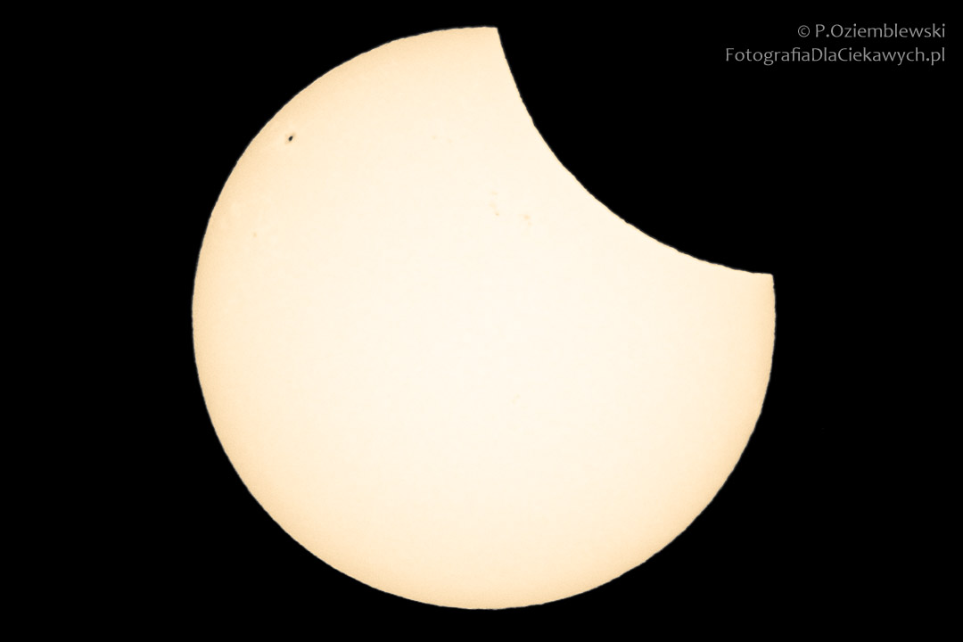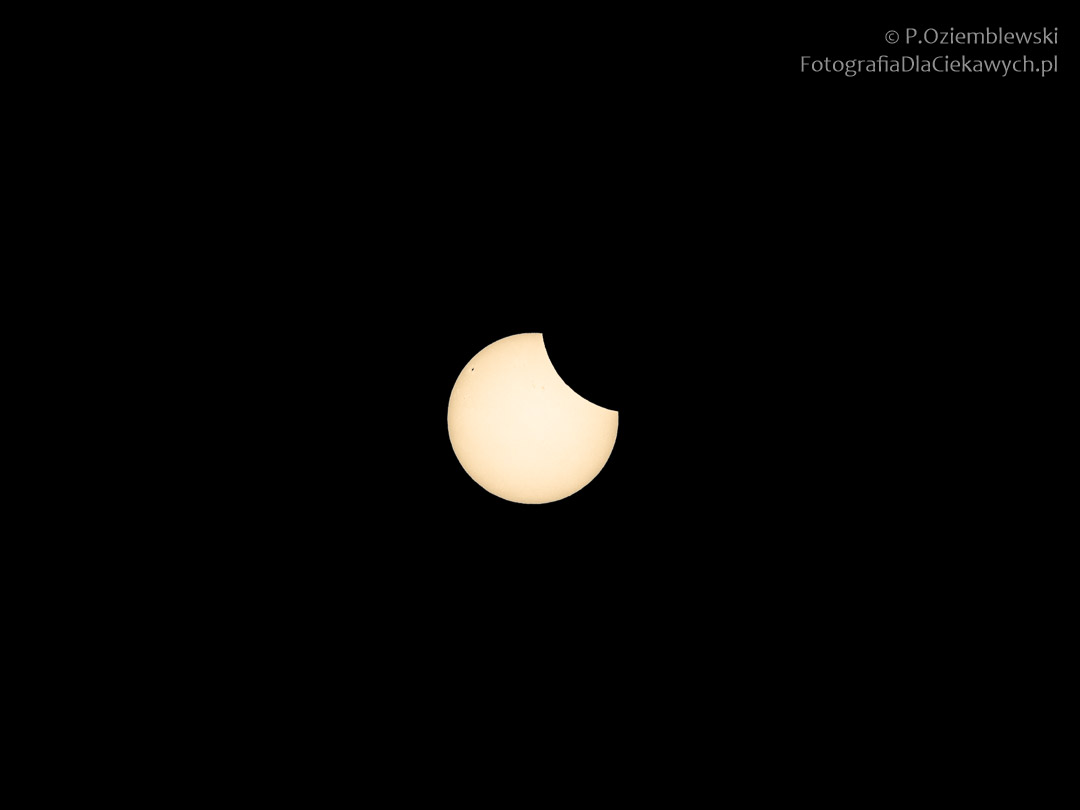 Tutaj częściowe zaćmienie słońca przez filtry szare -13 EV. Zdjęcie wykadrowane i obrobione w programie graficznym.