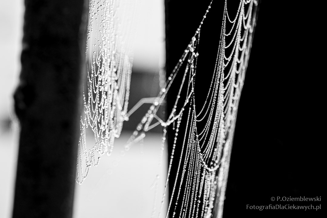 Mgliste poranki przynoszą dodatkowy bonus – krople osiadające  na wszystkich możliwych powierzchniach. Pajęczyny stają się wtedy prawdziwymi dziełami sztuki tworzonymi przez naturę.