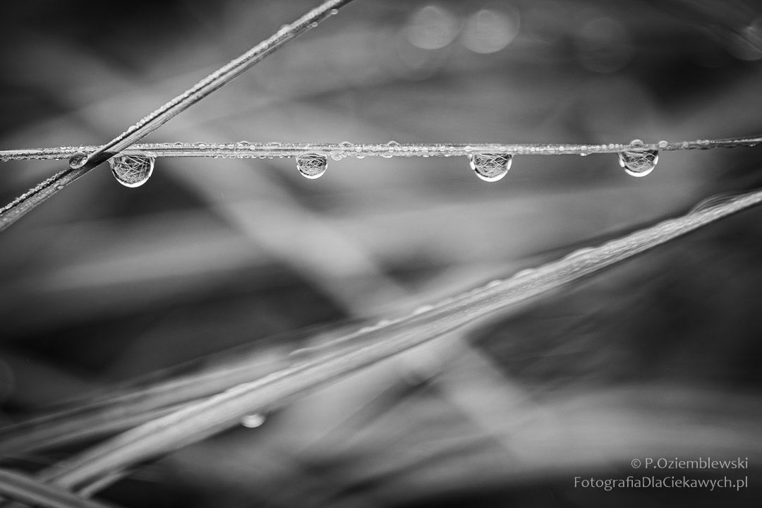 Rosa i mgła tworzą gotowe kompozycje. Regularne wzory pajęczyn, powtarzające się kształty kropel, symetryczne układy kropel na liściach traw – to wszystko czeka, by umieścić je w kadrze.