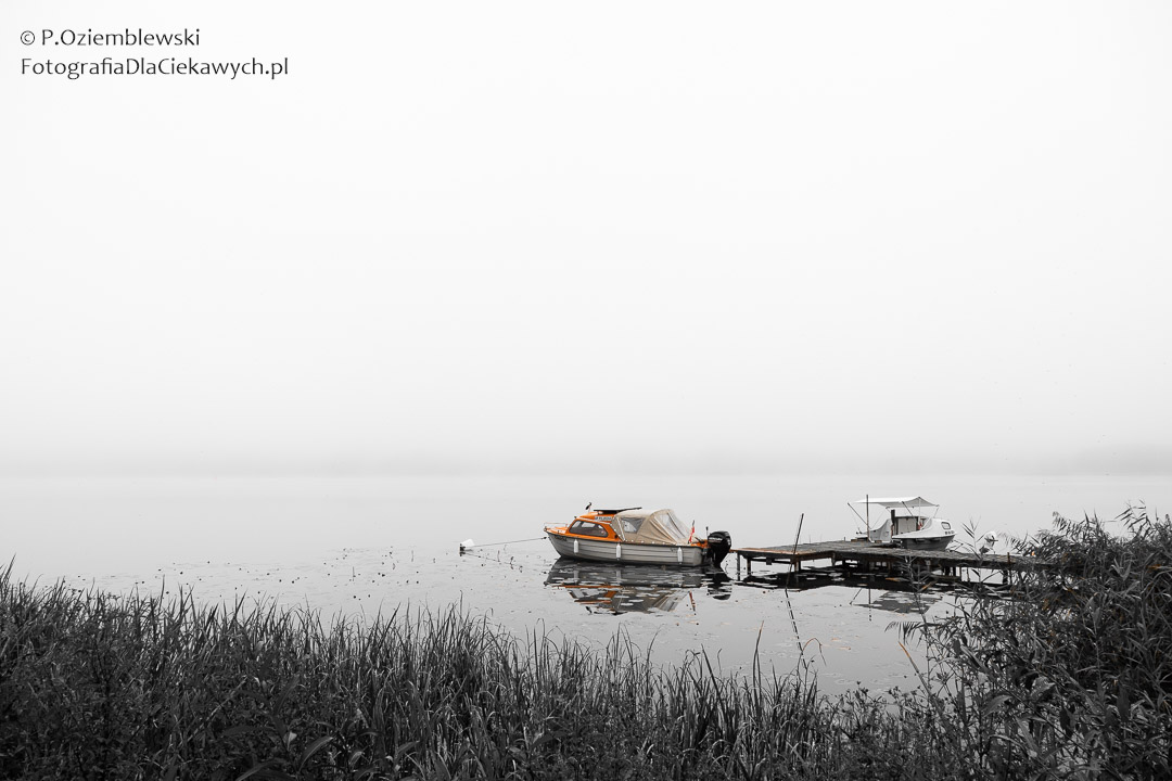 Takie warunki zachęcają również do eksperymentów z obróbką cyfrową. Możesz przykładowo skonwertować kadr do czerni i bieli, zostawiając na nim jeden kolor. Np. pomarańczową łódkę jak na zdjęciu poniżej. Efekt? Dodatkowy element, który zaciekawia i przyciąga wzrok trochę jak magnes.
