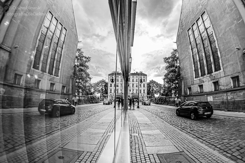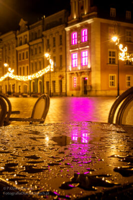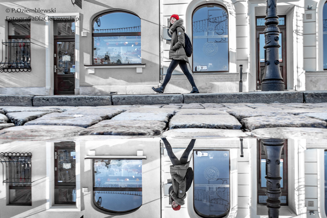 Mokra nawierzchnia po deszczu działa równie dobrze. Asfalt, kostka brukowa, a zwłaszcza kałuże na ulicach i chodnikach tworzą naturalne „lustra”. Dobrą porą na takie zdjęcia jest późny wieczór. Wtedy w mokrym podłożu odbijają się światła neonów i oświetlonych budynków. Miasto nabiera zupełnie innego, bardziej klimatycznego charakteru.