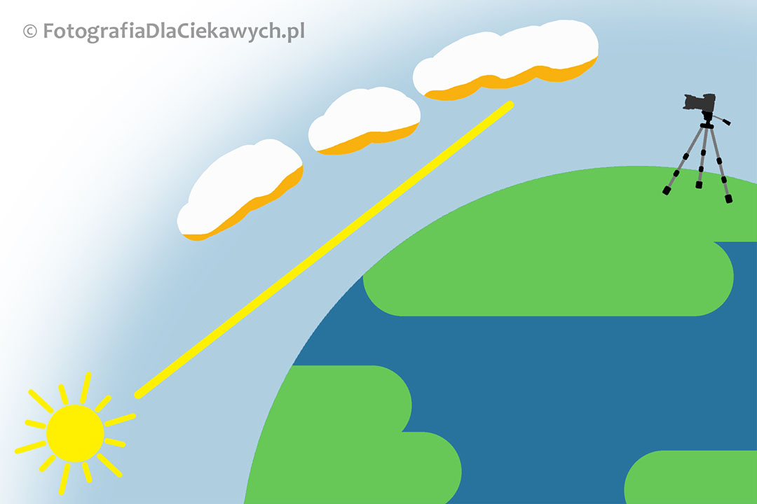 Schematyczne przedstawienie sytuacji, w której możesz łapać na zdjęciu podświetlone chmury.