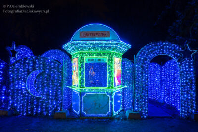 PS Na zdjęciu jest fragment ściany labiryntu z Lumina Park w Poznaniu. Widoczne smugi powstały jako efekt zoomowania w czasie naświetlania. Zdjęcie naświetlałem przez 0,8 sekundy. Sam Park jest bardzo fajny. Poniżej zdjęcie wejścia do labiryntu i wspomniany fragment ściany zrobiony bez zoomowania.